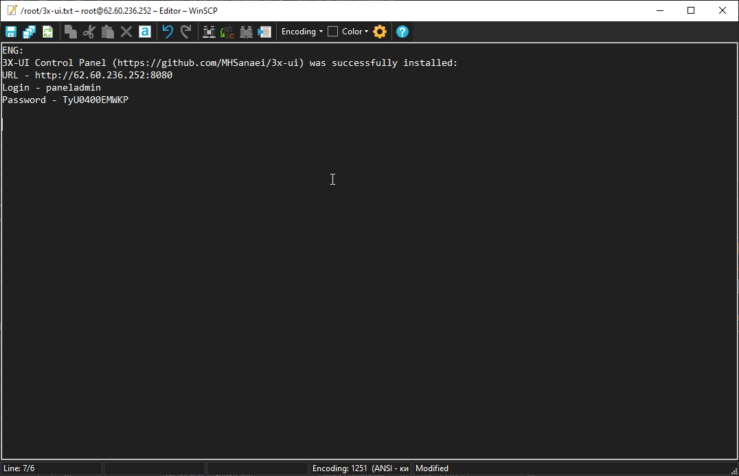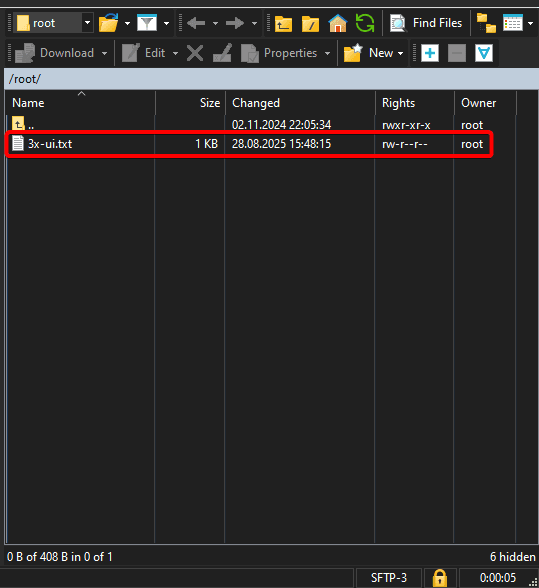 Open the file in the root directory "3x-ui.txt " with data for connection to the 3x-ui control panel: