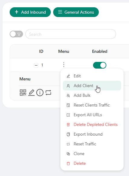 Similarly, in the 3x-ui panel, it is possible to create profiles for other users and protocols.