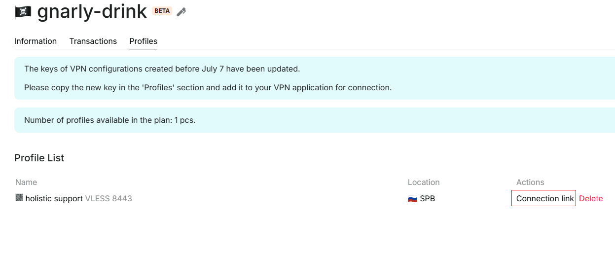 Open the connection link and copy the subscription link, we need it to import the configuration into the connection program.