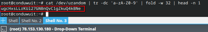cat /dev/urandom | tr -dc 'a-zA-Z0-9' | fold -w 32 | head -n 1After executing the command, a generated string will be displayed in the console, which we will specify in the .env file: