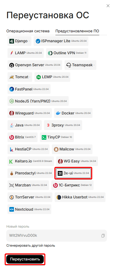 The OS will be installed according to the specified OS in the preinstalled software script, in this case Ubuntu 22.04 + Marzban will be installed.