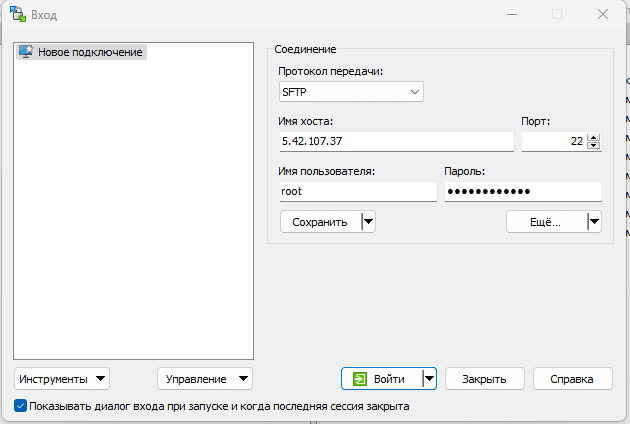 Connect to the server via WinSCP (or another convenient SFTP client) and specifying the IP, login and password from your personal account, or an email from your mail.\