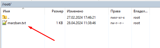 The file must be opened in the root directory "marzban.txt " with data for connection to the Marzban control panel: