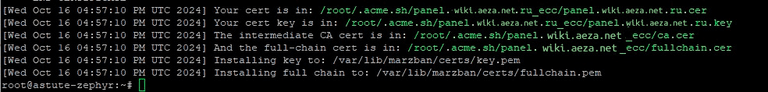 --fullchain-file /var/lib/marzban/certs/fullchain.pemAfter executing the commands, you will see a similar message about the successful certificate issue: