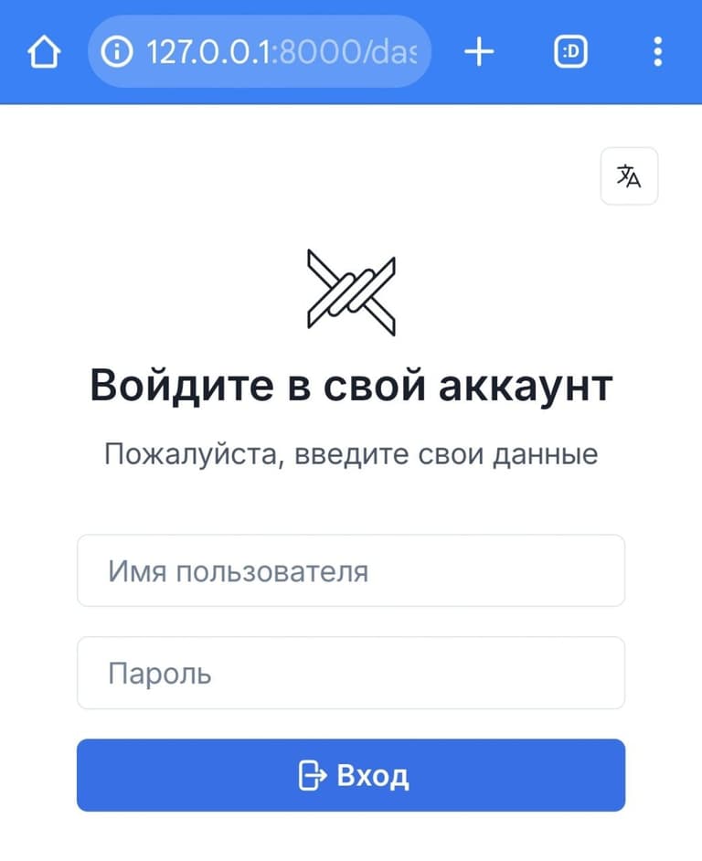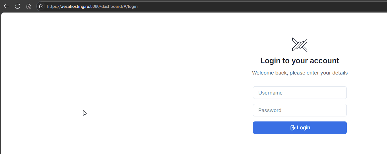 marzban restartAfter restarting, go to the browser via the link https://yourdomain:8000/dashboard and we observe the entrance window to the Marzban panel: