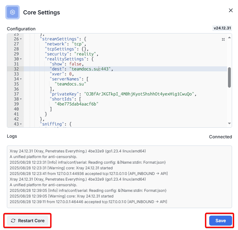 Be sure to choose unpopular but reliable sites as Server Name and Dest for your VLESS TCP Reality configuration.