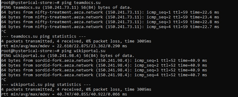 ping site -c 4If you haven't found a site suitable for these requirements, you can use the sites listed below: