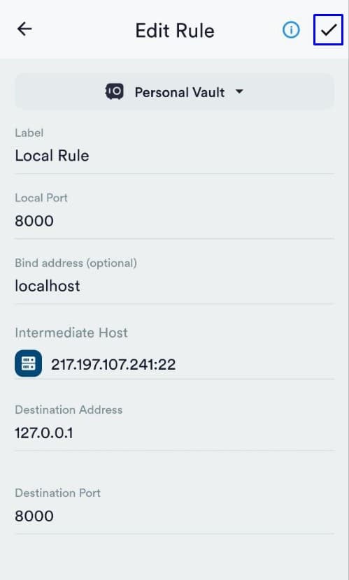 We set a name for this tunnel and click on the "Check mark" to save the settings: