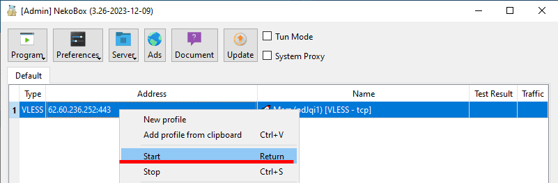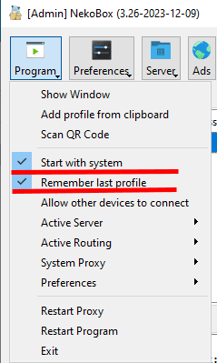 Now Nekoray is configured and proxies all connections. For convenience, you can enable Nekoray autostart.