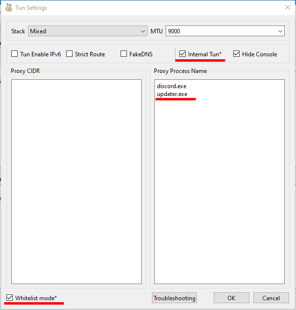 For example, to proxy only Discord, add discord.exe and updater.exe to the list, then click "OK".