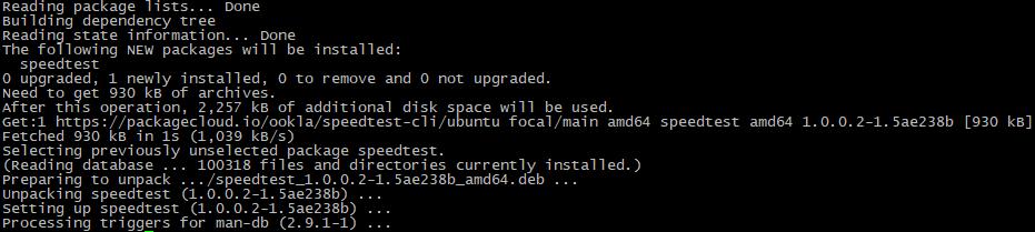 curl -s https://packagecloud.io/install/repositories/ookla/speedtest-cli/script.deb.sh | sudo bashFiles successfully downloaded.