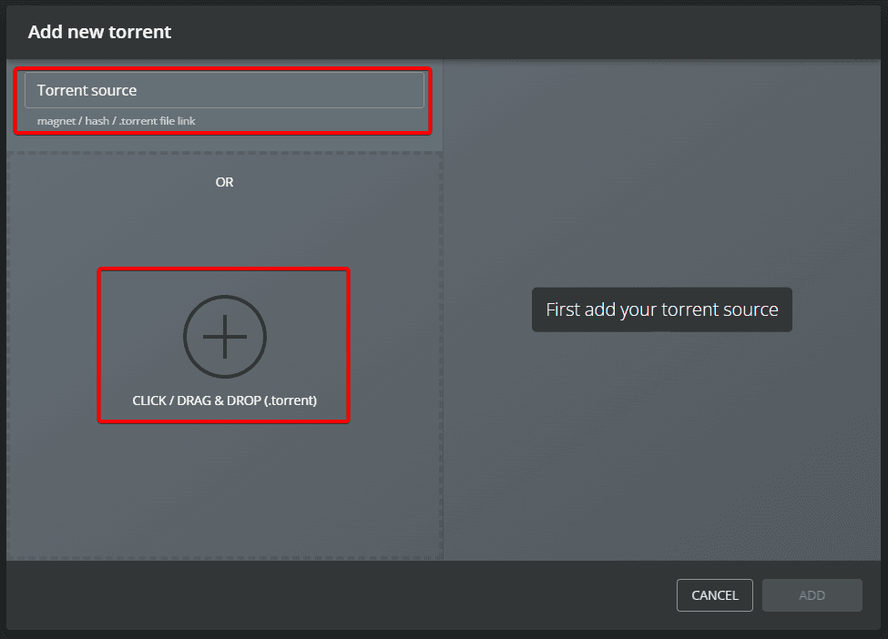 Then transfer the torrent file or paste the magnet link text (torrent file content).