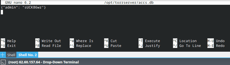 nano /opt/torrserver/accs.dbThen simply replace the login and password data in the format {"admin": "password"} with the desired username and password: