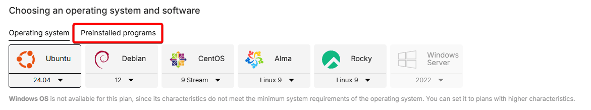 OS installation will be performed according to the OS specified in the pre-installed software script, in this case Ubuntu 22.04 + TorrServer will be installed
