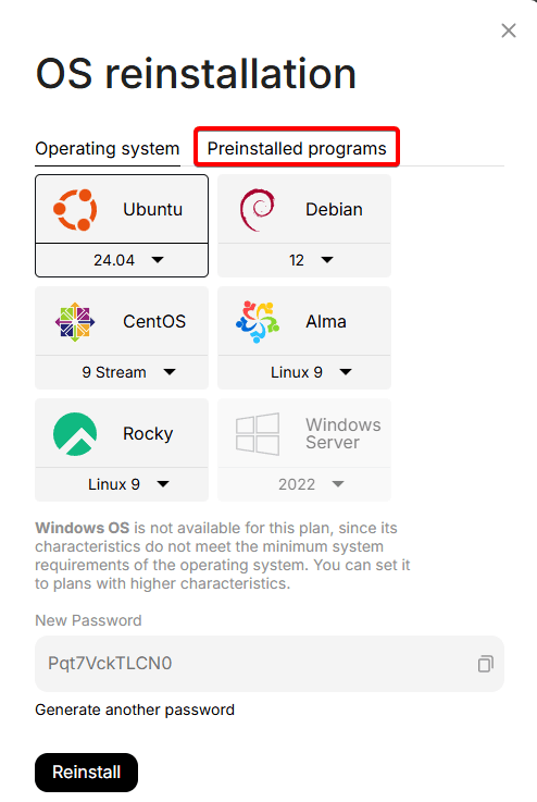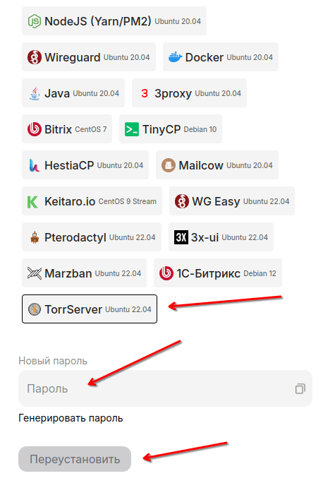OS reinstallation will be performed according to the OS specified in the pre-installed software script, in this case Ubuntu 22.04 + TorrServer will be installed