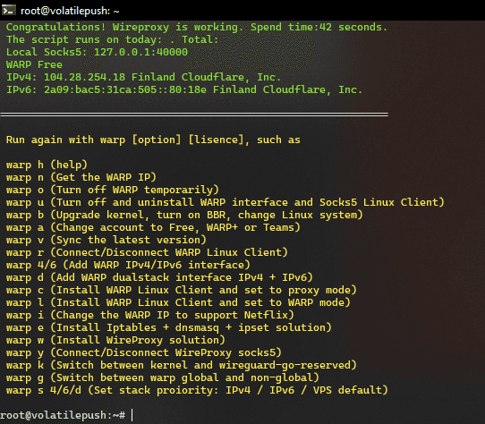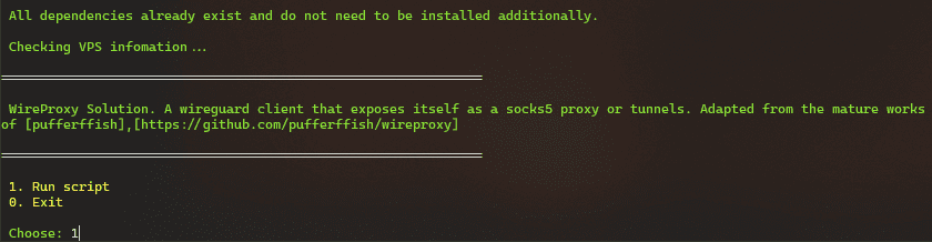 wget -N https://gitlab.com/fscarmen/warp/-/raw/main/menu.sh && bash menu.sh wSelect English by pressing 1 and Enter: