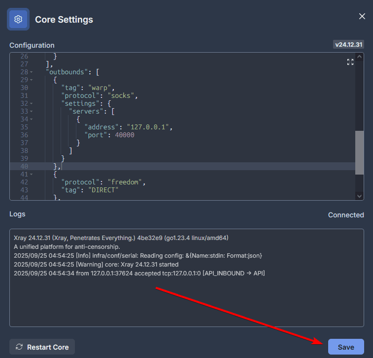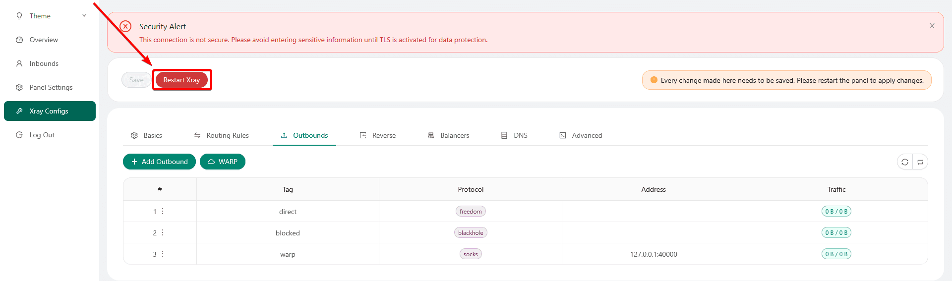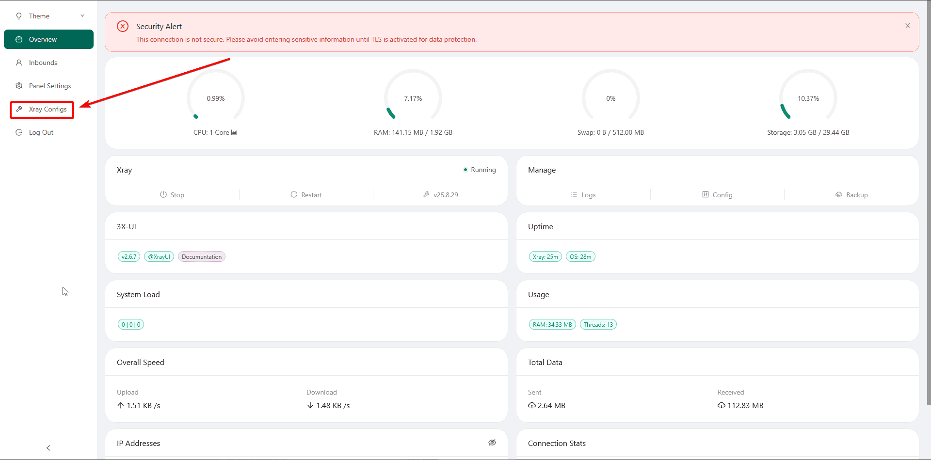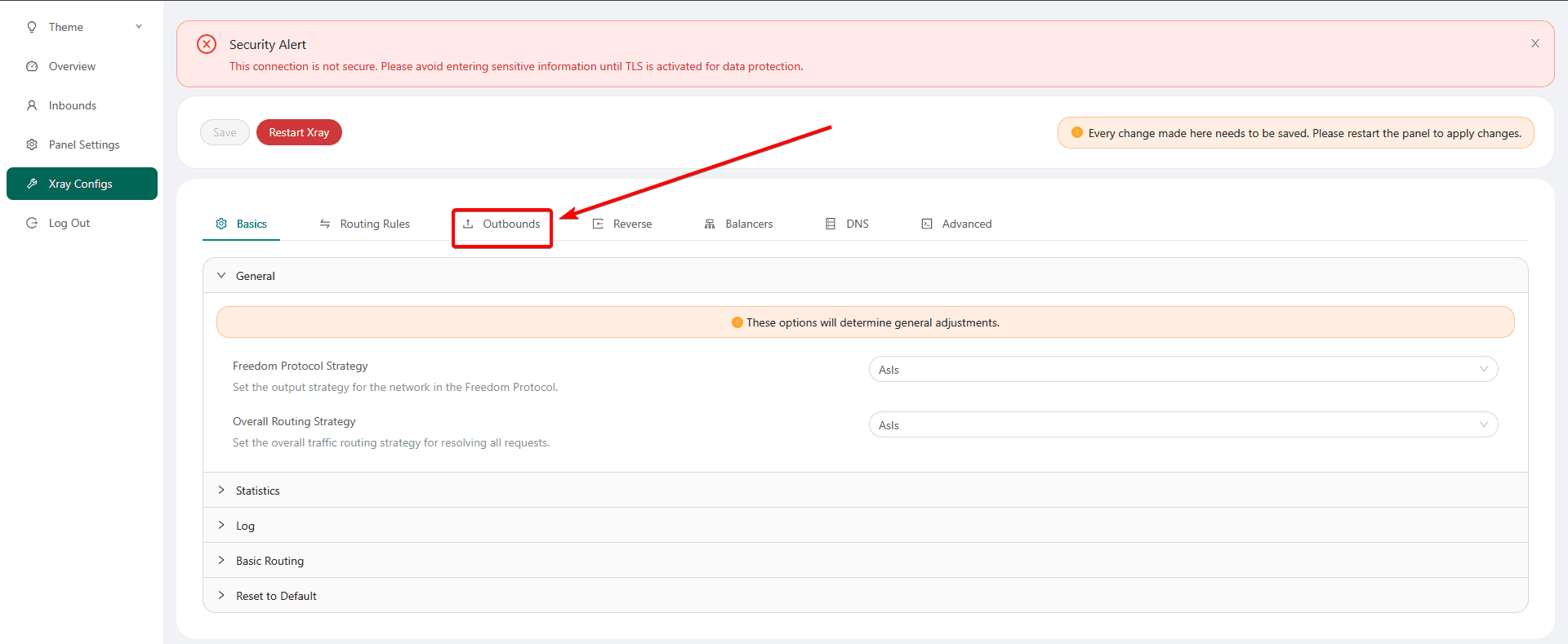 To get started, log into the 3x-ui package and go to the "Xray Settings" section