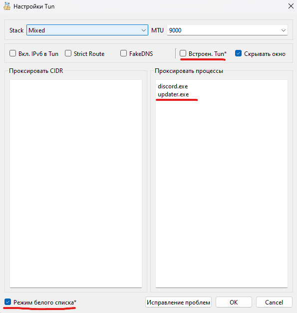 Активация режима TUN и запуск: