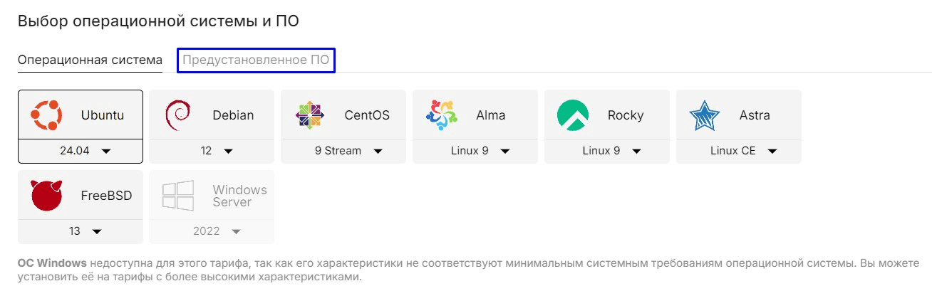 Покупка необходимого тарифа с предустановленным OpenVPN