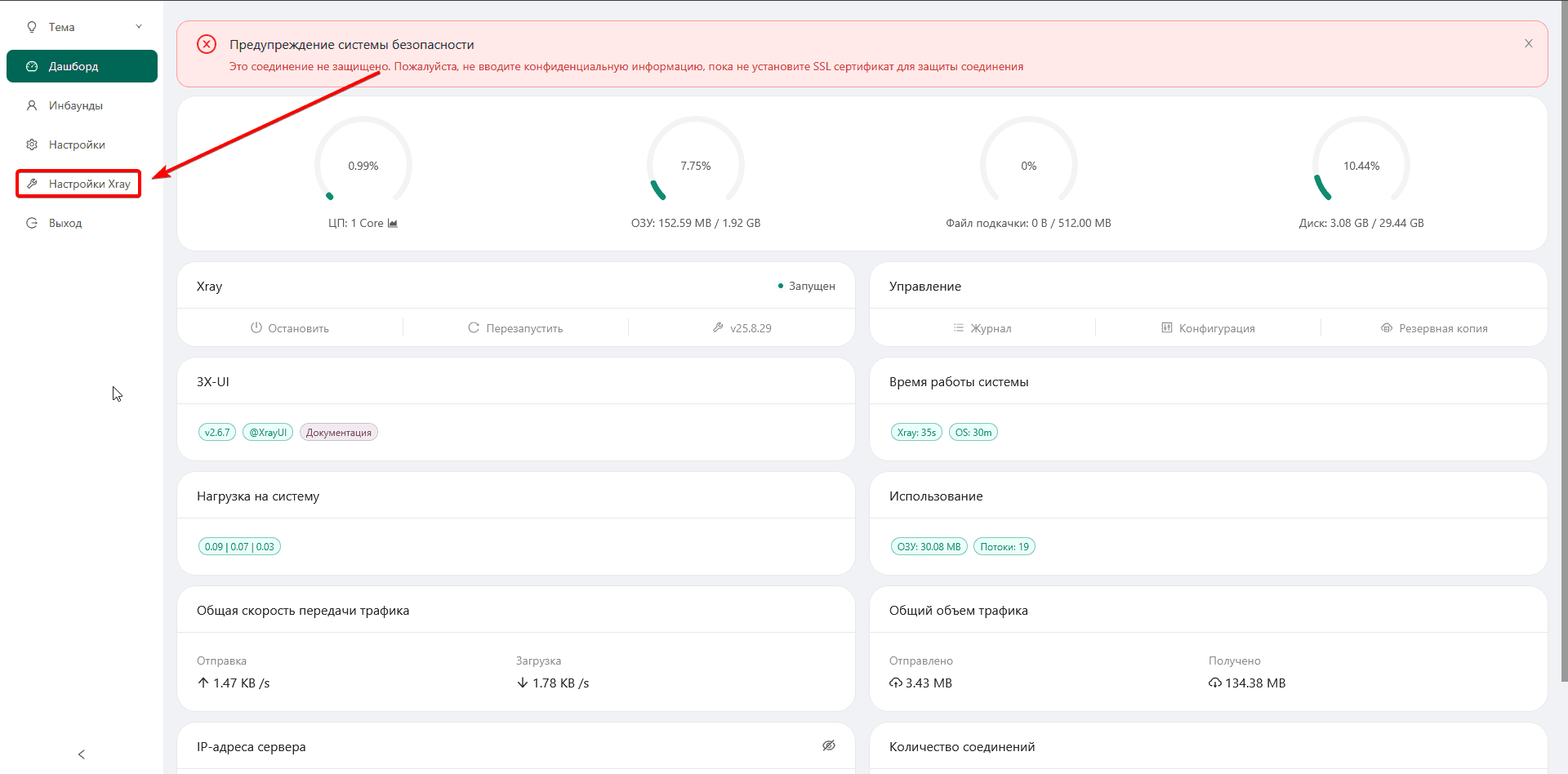 Для начала войдите в 3x-ui паенль и перейдите в раздел "Настройки Xray"
