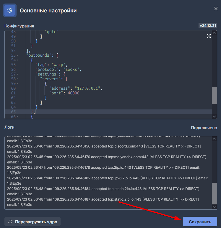 И перезапустите Xray